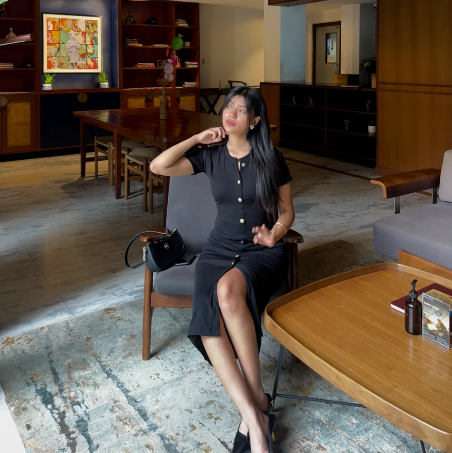 Where sleek meets versatile. This ribbed midi dress is all about effortless shape and subtle detail. Crafted from a soft, stretch-knit fabric that hugs the body, it features a row of luxe gold buttons down the front and adjustable side drawstrings to cinch the waist just the way you like. The result? A flattering, feminine silhouette that moves with you—from day to night.