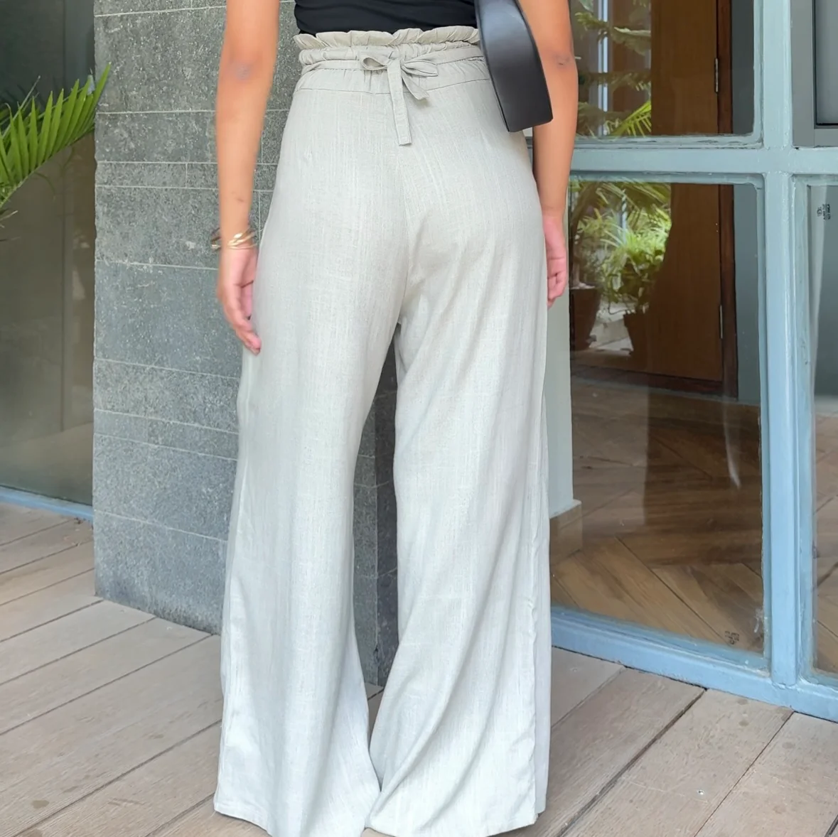 Tailored meets effortless in these Wide-Leg Linen Pants—your wardrobe’s new power player. Cut in a breezy linen blend with a super high-rise fit, they bring structure and ease in equal measure. A side zipper keeps the silhouette clean and refined, while the back elastic adds all-day comfort. Finished with a subtle waist tie detail, these pants easily dress up with a crisp shirt or down with a relaxed tee. From desk to dinner to weekend escapes, they’re made to move with your life.